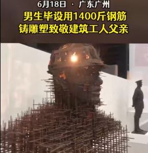 摘要:广州美术学院雕塑专业学生黄建亿的毕设作品, 想通过作品向父亲以及所有建设者致敬。 责任编辑:唐闻佳 综合:人民日报、江苏新闻、网友评论等 网友: 黄同学说, 以自己的父亲