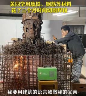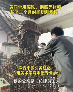 男生用1400斤钢筋铸造雕塑致敬建筑工人父亲,网